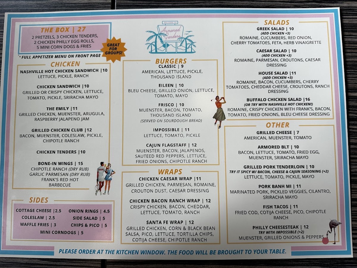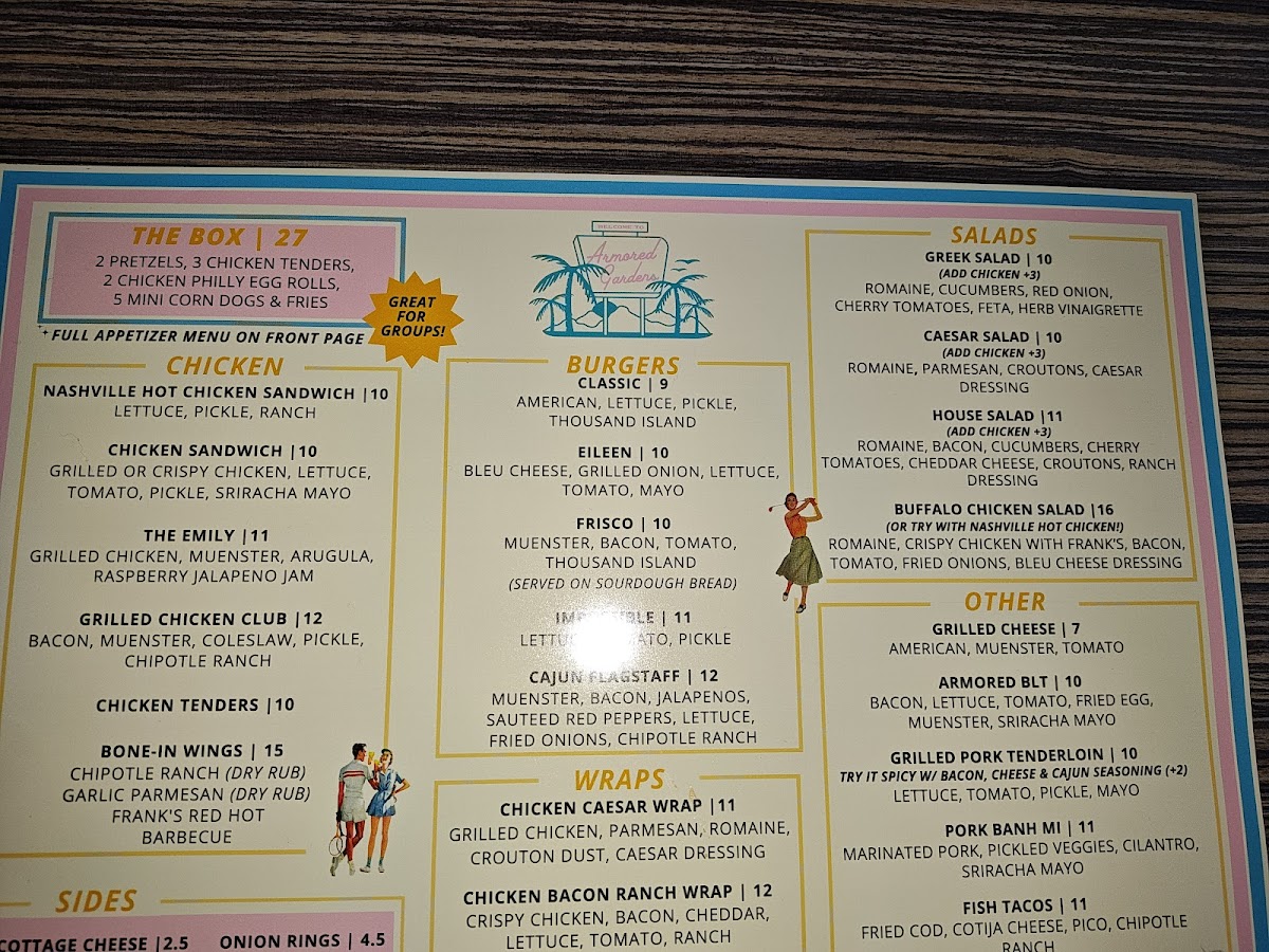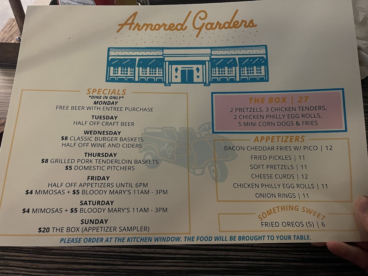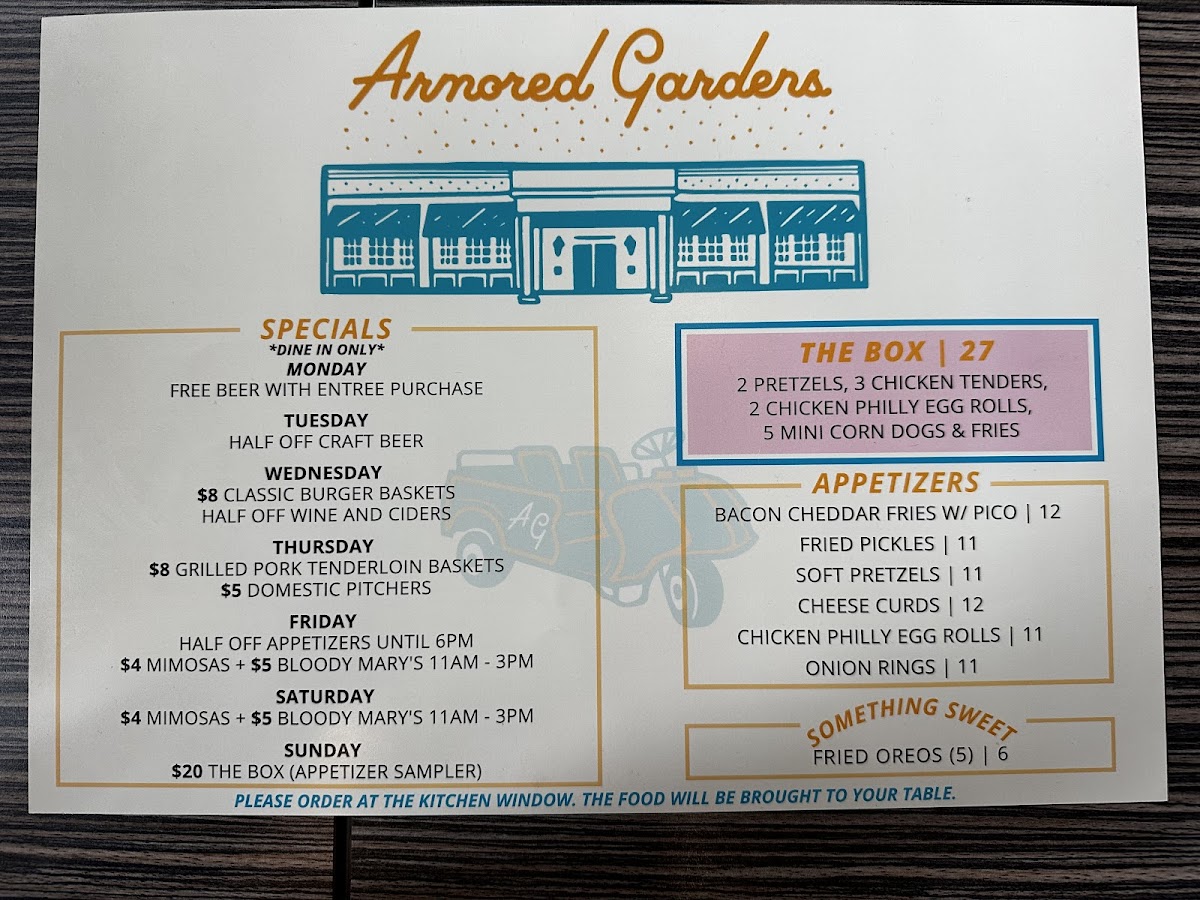 Whether it’s a casual lunch, a night out with friends, or a low-key date, the menu supports a welcoming atmosphere where diners can relax and savor every bite. Comfort foods like fish and chips, pulled pork sandwiches, and bbq cheese fries make for satisfying meals that match the easygoing, neighborhood feel of Armored Gardens.
