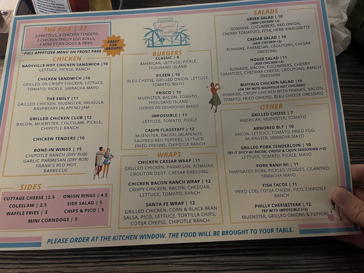 The menu at Armored Gardens offers a relaxed mix of casual bites and comforting flavors, ideal for any casual gathering or a laid-back evening out. You’ll find a well-rounded selection of hearty sandwiches, tasty wraps, and satisfying baskets like the Classic Burger or Nashville Chicken Sandwich, perfect for sharing or enjoying solo.